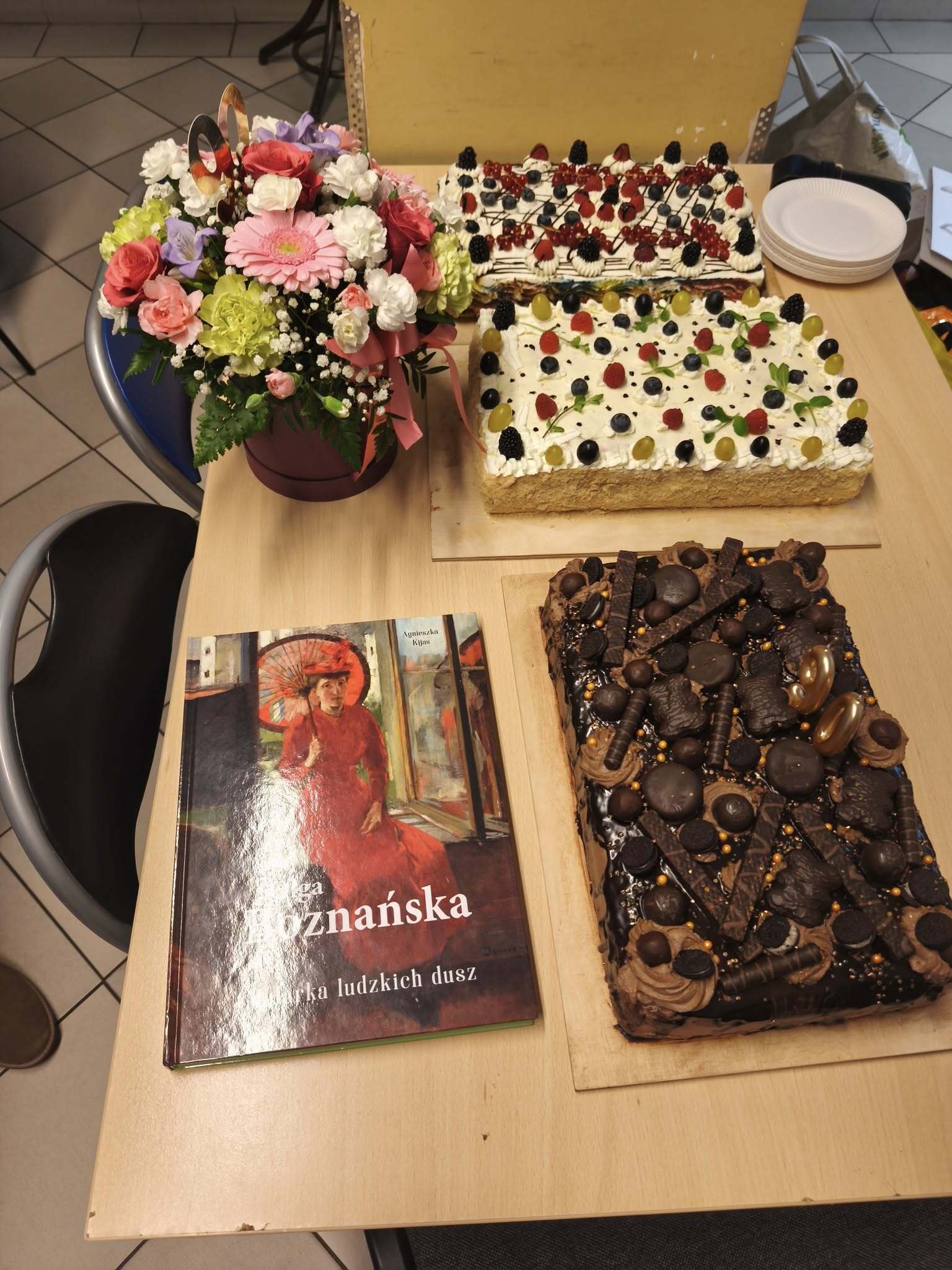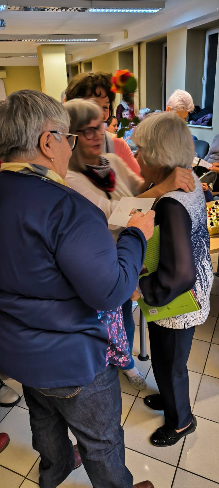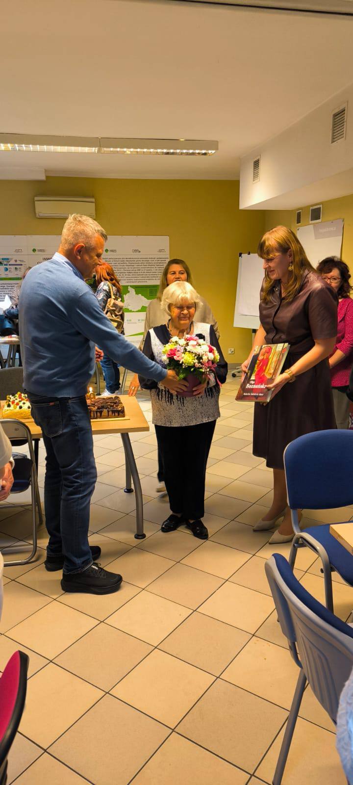 Nasza członkini Danuta skończyła właśnie 90 lat. Zorganizowaliśmy jej małą imprezkę. Trzy wielkie torty upiekła Mirka. 100 lat i inne utwory dla jubilatki zagrał nasz zespół muzyczny. Następna taka impreza za 10 lat. Było miło i uroczyście