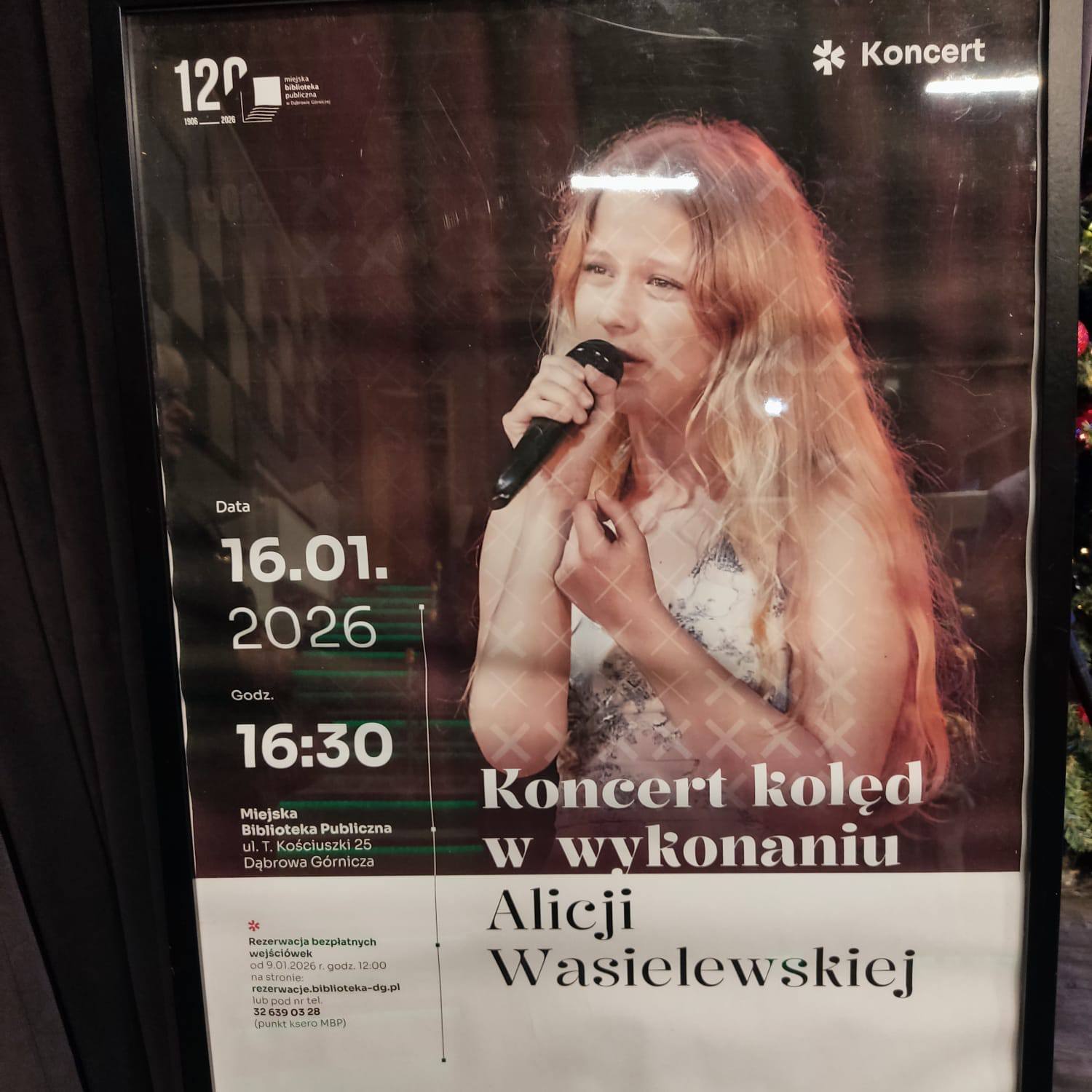 W piątek 16 stycznia 2026 roku w Miejska Biblioteka Publiczna w Dąbrowie Górniczej jeszcze w świątecznym nastroju, utalentowana młoda piosenkarka Alicja Wasielewska uraczyła nas pięknym koncertem kolęd..