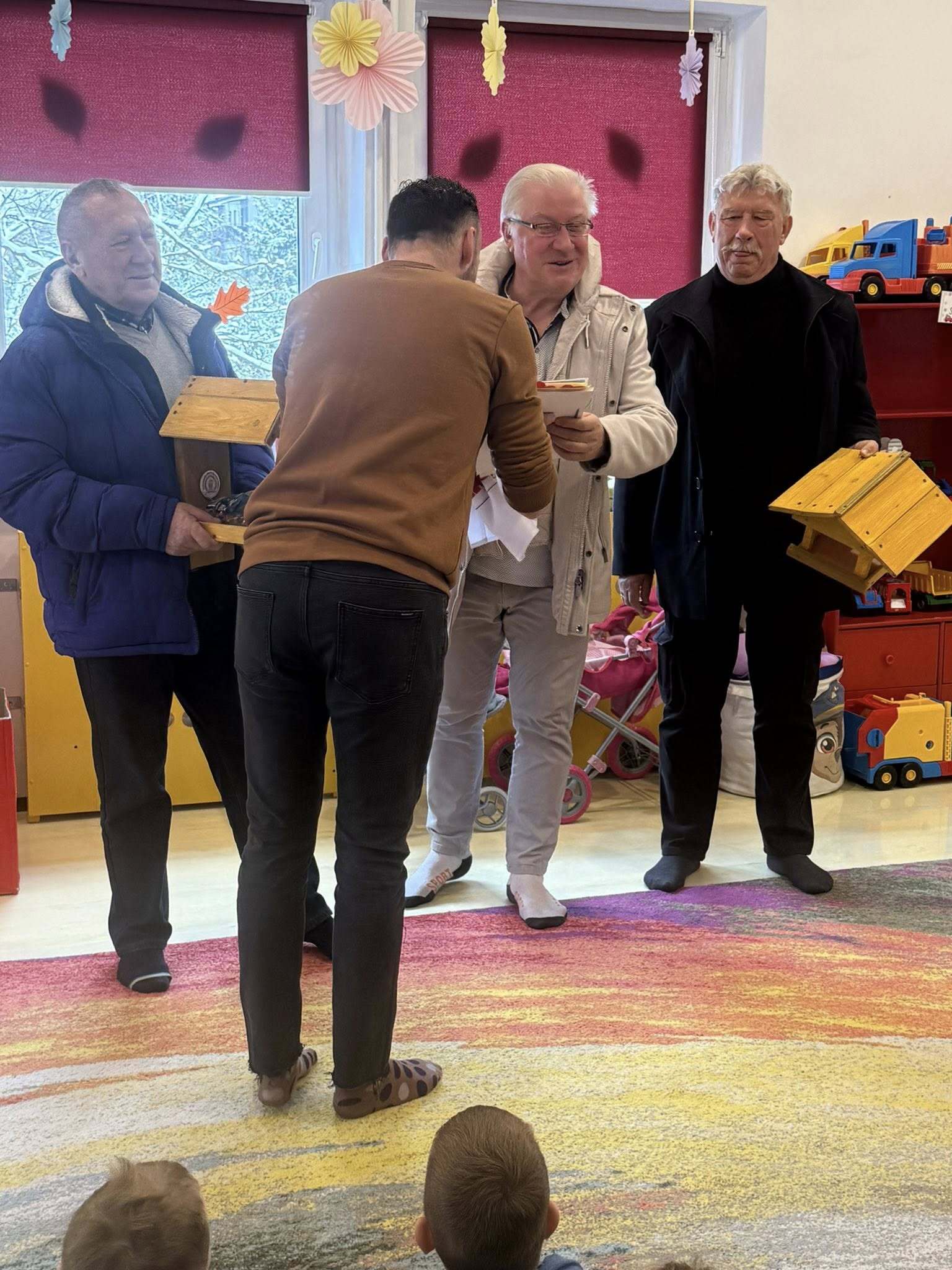 Stowarzyszenie Aktywności Społecznej - Dąbrowiacy przekazało w dniu dzisiejszym na ręce naszego przedszkola dwa własnoręcznie wykonane karmniki dla ptaków