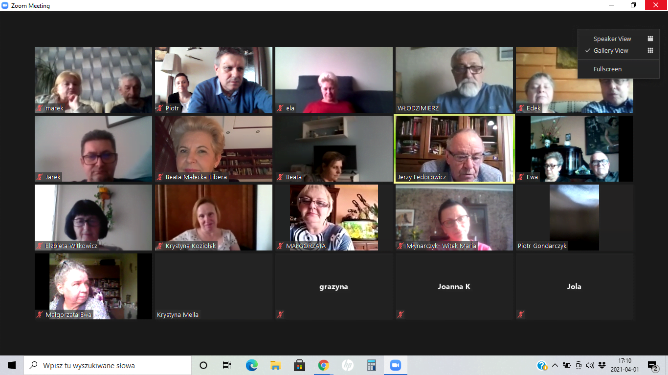 W czwartek 01 kwietnia 2021 roku podczas spotkania online stowarzyszenia gościliśmy Jerzego Fedorowicza- poetę, aktora, reżysera a obecnie Senatora RP. Gość opowiedział nam o swych scenicznych przygodach i anegdotach z tym związanych.