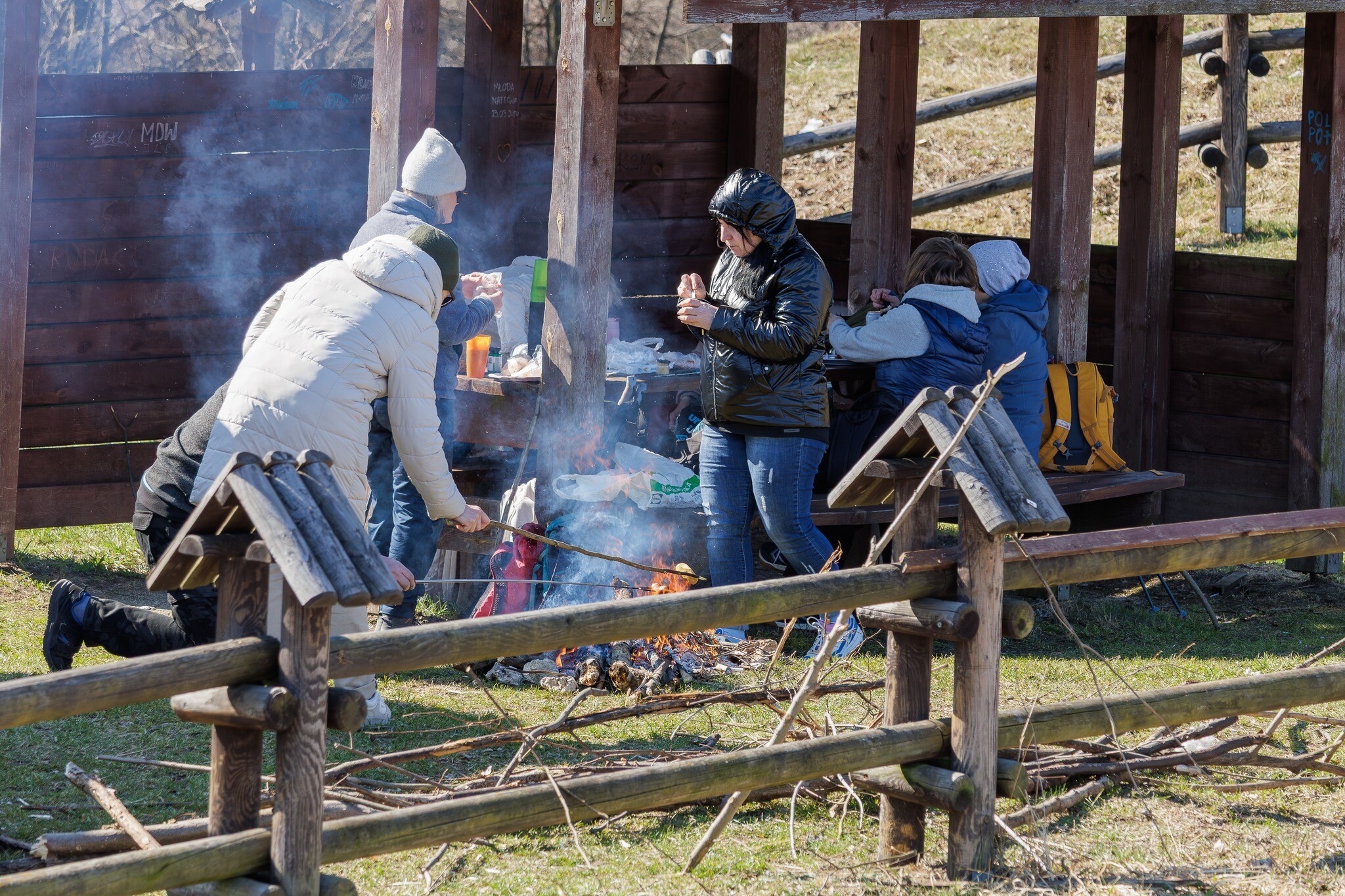Spacer z Łaz na wzgórze Kromołowiec w Niegowonicach. Ognisko, kiełbaski i topienie Marzanny w Mitrędze.